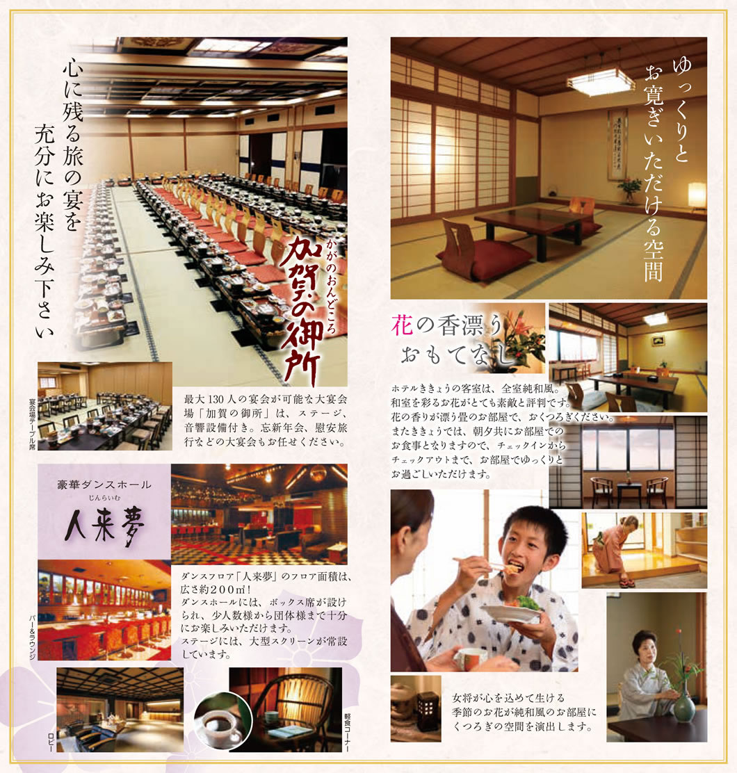 ご宿泊プラン 宿泊プラン一覧 空室カレンダー 予約確認・キャンセル 航空券+ご宿泊 出発空港 ■■■■■主要空港■■■■■ 東京(羽田・成田) 大阪(伊丹・関西・神戸) 羽田空港 成田国際空港 中部国際空港 伊丹空港 関西国際空港 福岡空港 新千歳空港 那覇空港 ■■■■■北海道■■■■■■ 新千歳空港 札幌丘珠空港 旭川空港 帯広空港 釧路空港 函館空港 稚内空港 中標津空港 女満別空港 紋別空港 利尻空港 奥尻空港 ■■■■■東北■■■■■■■ 青森空港 三沢空港 花巻空港 仙台空港 庄内空港 秋田空港 大館能代空港 山形空港 福島空港 ■■■■■関東■■■■■■■ 東京(羽田・成田) 羽田空港 成田国際空港 大島空港 八丈島空港 三宅島空港 茨城空港 ■■■■■中部■■■■■■■ 中部国際空港 小牧空港 小松空港 新潟空港 富山空港 静岡空港 能登空港 まつもと空港 ■■■■■近畿■■■■■■■ 大阪(伊丹・関西・神戸) 伊丹空港 関西国際空港 神戸空港 南紀白浜空港 但馬空港 ■■■■■中国■■■■■■■ 鳥取空港 米子空港 出雲空港 広島空港 広島西空港 隠岐空港 岡山空港 山口宇部空港 萩・石見空港 岩国空港 ■■■■■四国■■■■■■■ 徳島空港 高松空港 松山空港 高知龍馬空港 ■■■■■九州■■■■■■■ 福岡空港 北九州空港 佐賀空港 長崎空港 壱岐空港 五島福江空港 対馬空港 熊本空港 大分空港 宮崎空港 鹿児島空港 奄美大島空港 沖永良部空港 喜界島空港 種子島空港 徳之島空港 屋久島空港 与論空港 ■■■■■沖縄■■■■■■■ 那覇空港 粟国空港 石垣空港 北大東空港 久米島空港 慶良間空港 多良間空港 波照間空港 南大東空港 宮古島(宮古・下地島) 宮古空港 下地島空港 与那国空港 宿泊日 泊数 1泊 2泊 3泊 4泊 5泊 人数 1人 2人 3人 4人 5人 宿泊プラン一覧 空室カレンダー 予約確認・キャンセル レンタカー+ご宿泊 新幹線+ご宿泊 ホテルききょう HOME パンフレット パンフレットダウンロードPamphlet 当宿はSDGsへの取り組みの一環として、紙パンフレットの配布・送付は行っておりません。 宿パンフレットはこちらからダウンロードしてご覧くださいませ。 パンフレットダウンロード 館内図 館内図ダウンロード